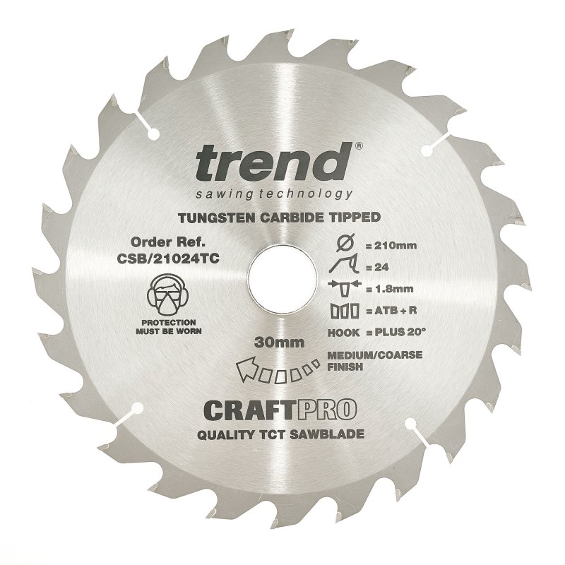 Trend CraftPro Thin Kerf Cordless Saw Blade - 210mm dia x 1.8 kerf x 30 bore 24T
