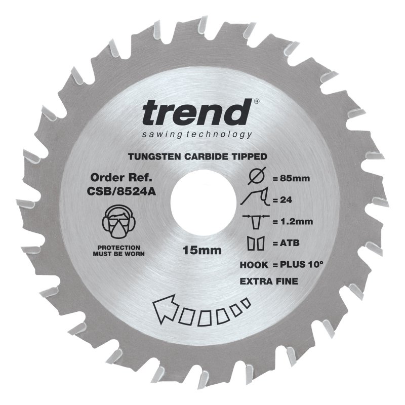 Trend CraftPro Thin Kerf Cordless Saw Blade - 85mm dia x 1.2 kerf x 15 bore 24T