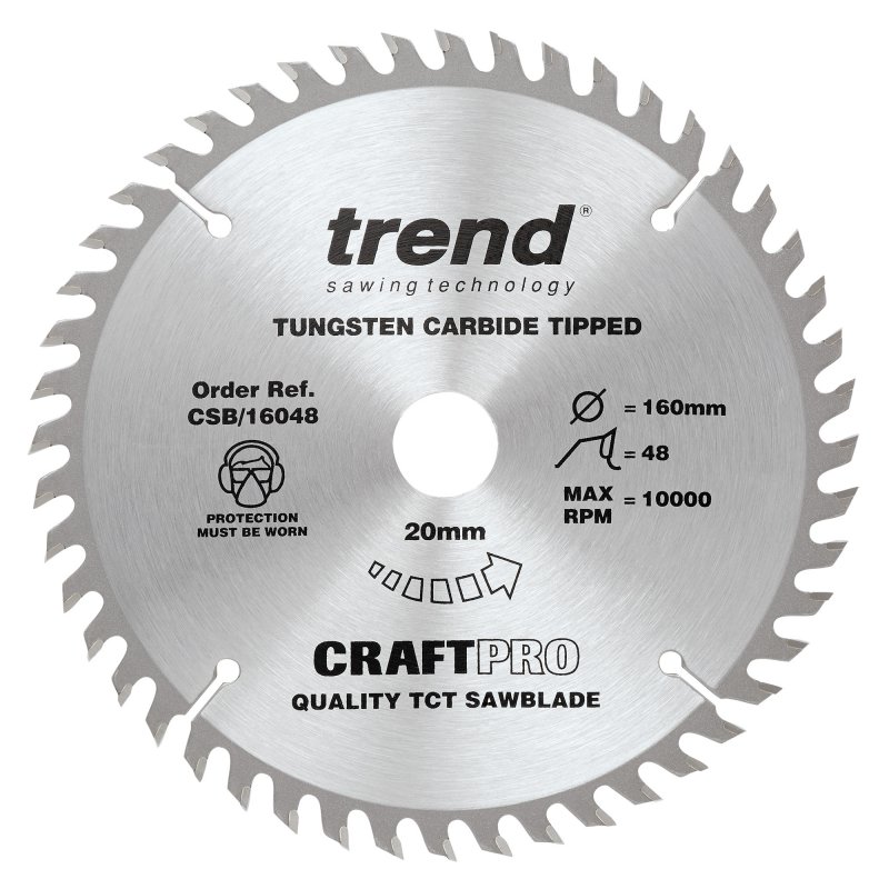 Trend CraftPro Trimming Crosscut Saw Blade - 160mm dia x 2.4 kerf x 20 bore 48T
