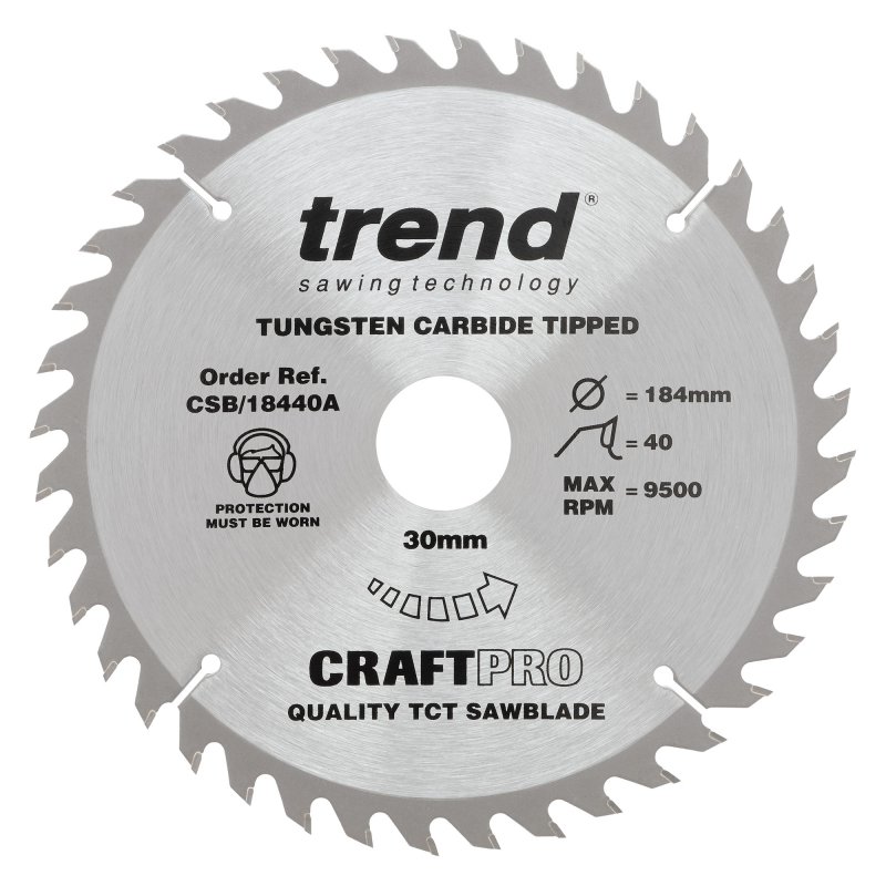 The perfect replacement blade for 184mm diameter mains powered circular saws. With 40 tooth ATB (Alternate Top Bevel) configuration ideal for finer crosscutting work.