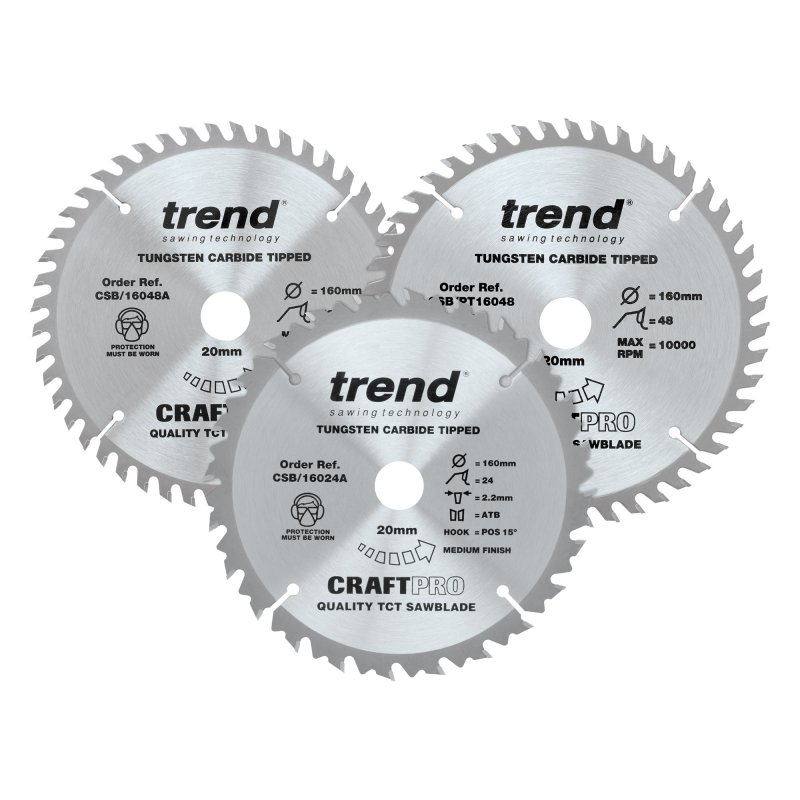 Trend CraftPro Triple Pack Mixed Saw Blade - 160mm dia x 2.2 kerf x 20 bore 24T 48T