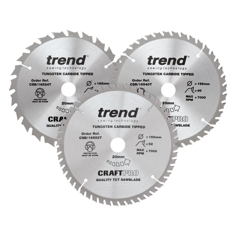 Trend CraftPro Triple Pack Mixed Saw Blade - 165mm dia x 1.5 kerf x 20 bore 24T 40T 52T