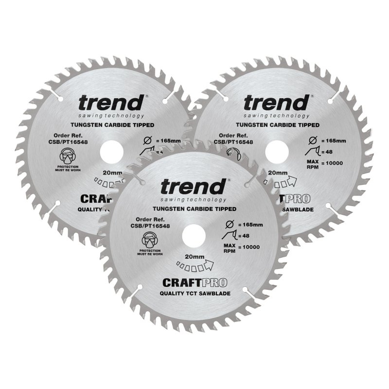 Trend CraftPro Triple Pack Panel Trimming Saw Blade - 165mm dia x 2.2 kerf x 20 bore 48T