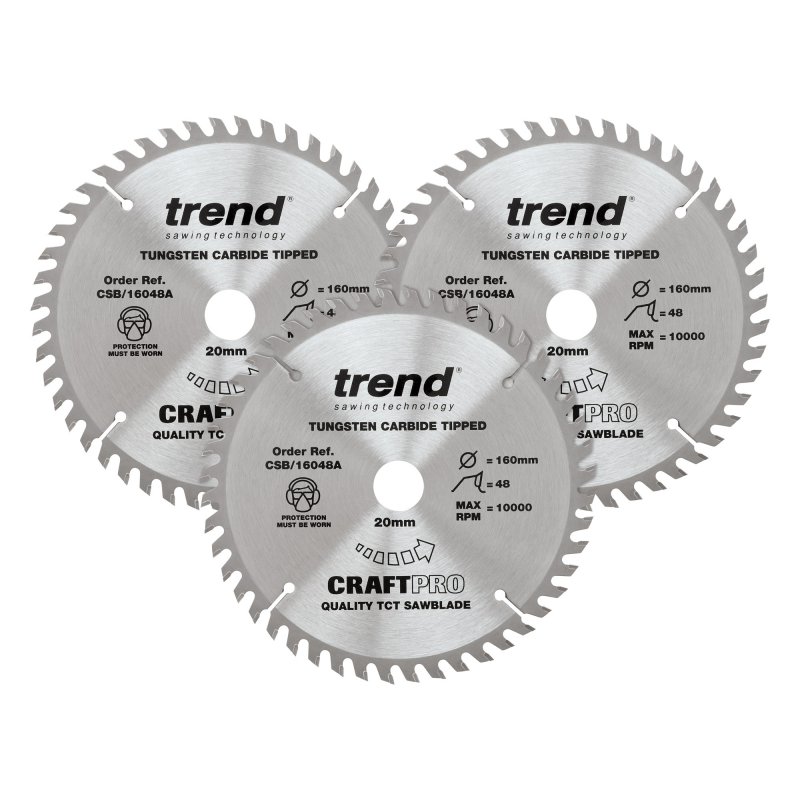 Trend CraftPro Triple Pack Trimming Saw Blade - 160mm dia x 2.2 kerf x 20 bore 48T