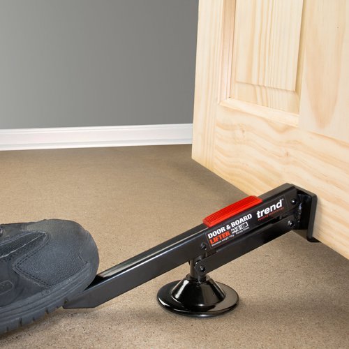 - Foot operated lifter to support door while fitting into door frame