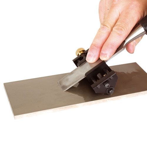 - A diamond honing guide to ensure the correct angle is maintained on chisels and plane irons when used with a diamond whetstone.