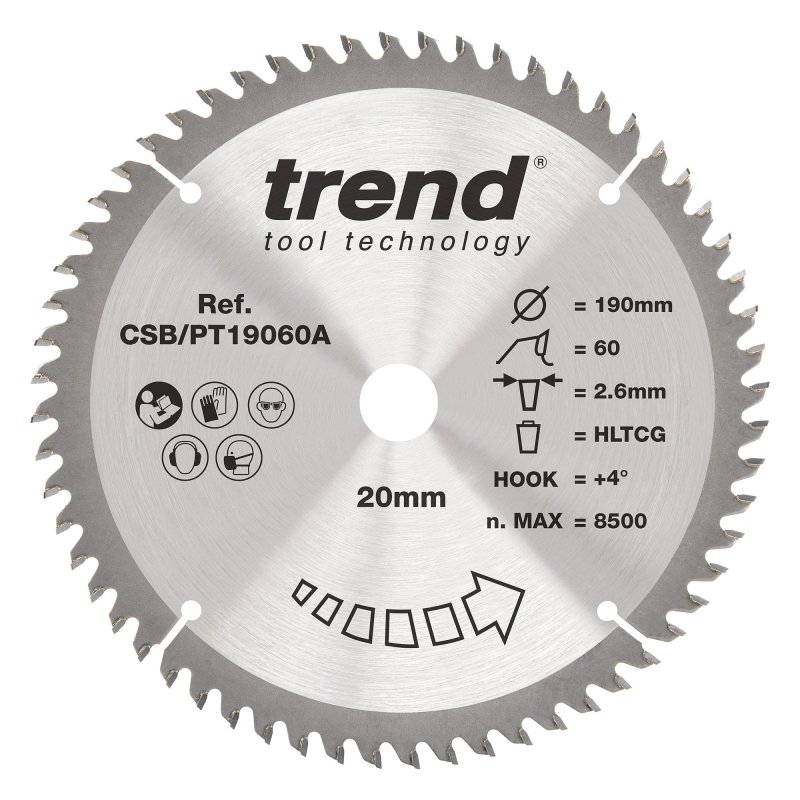 Trend Laminate / HPL Circular Saw Blade - 190mm dia x 2.6 kerf x 20 bore 60T