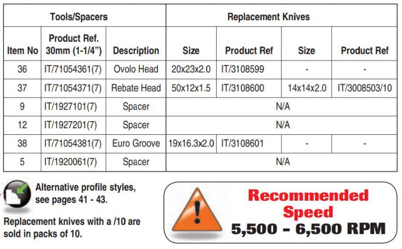 Can be used in conjunction with Trend modular window system tooling or as individual spacers / collars on a 30mm spindle moulder shaft.