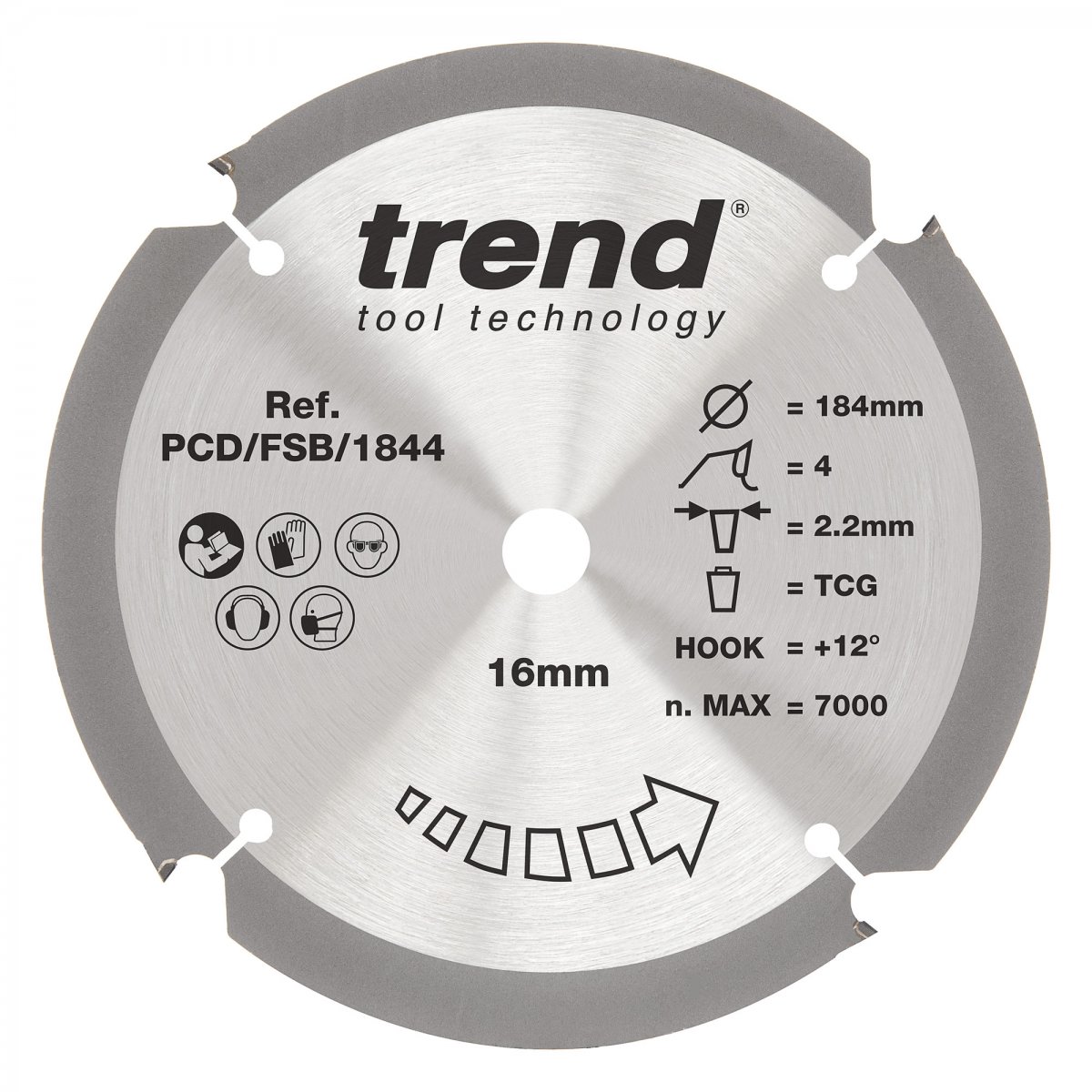 Trend PCD Fibre Cement Circular Saw Blade - 184mm dia x 2.2 kerf x 16 bore 4T