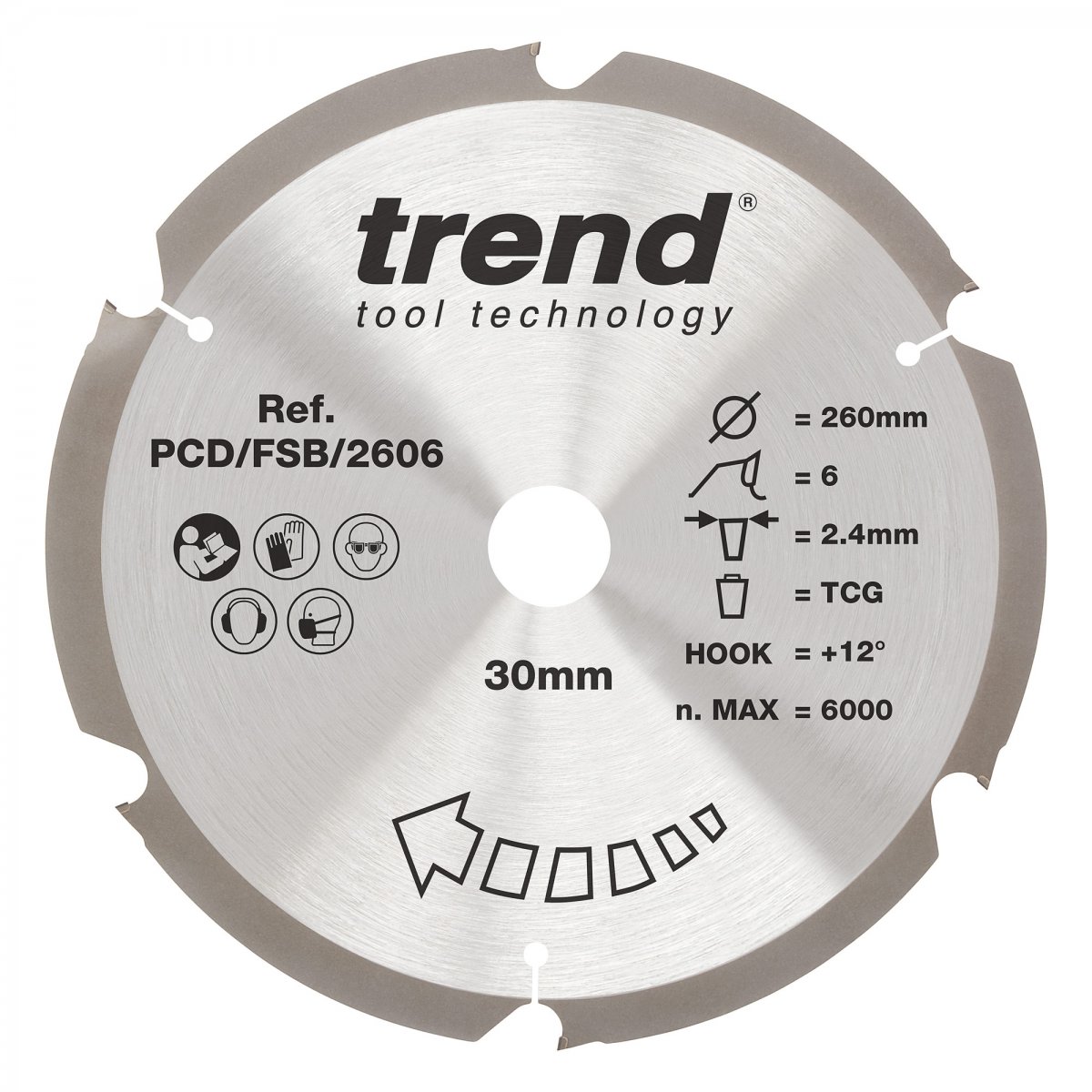 Trend PCD Fibre Cement Circular Saw Blade - 260mm dia x 2.4 kerf x 30 bore 6T