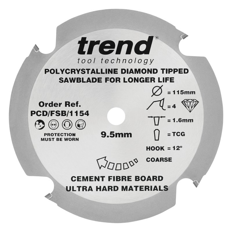 Trend PCD Fibreboard Saw Blade - 115mm dia x 1.6 kerf x 9.5 bore 4T
