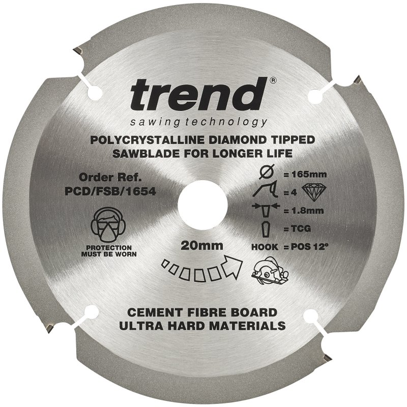 Trend PCD Fibreboard Saw Blade - 165mm dia x 1.8 kerf x 20 bore 4T