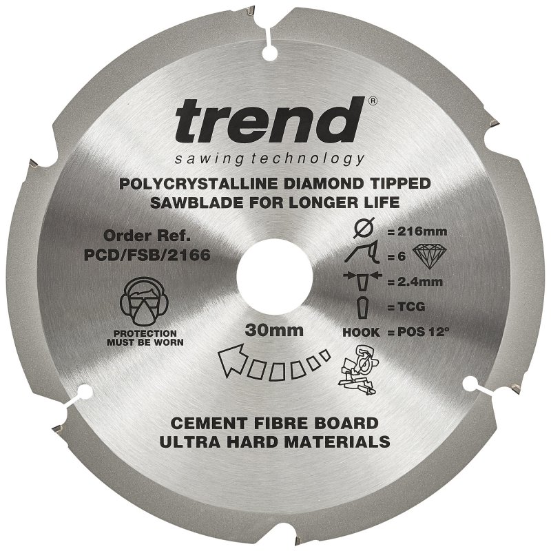 Trend PCD Fibreboard Saw Blade - 216mm dia x 2.4 kerf x 30 bore 6T