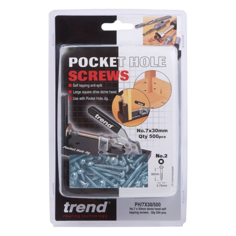Square drive, self-tapping, solid steel wood screws coated with Zinc to protect against rusting, ideal for a variety of indoor projects. 30mm length fine thread to suit 19mm hard woods such as oak, ash, maple and more. Designed for use with Pocket Hole Jigs.