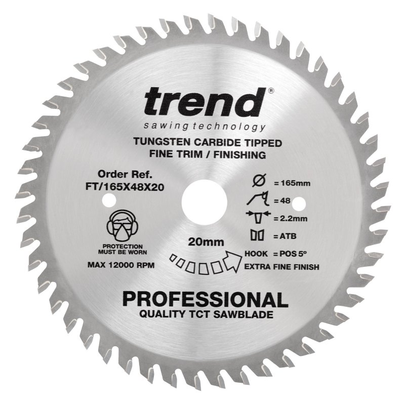 Trend Professional Fine Trim Saw Blade - 165mm dia x 2.2 kerf x 20 bore 48T