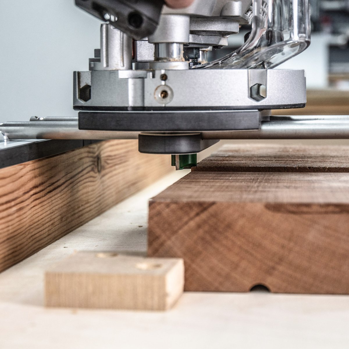 - Requires: router (½”/12mm collet – min.1300W), cutter (½”/12mm shank), and guide bush (30mm diameter).