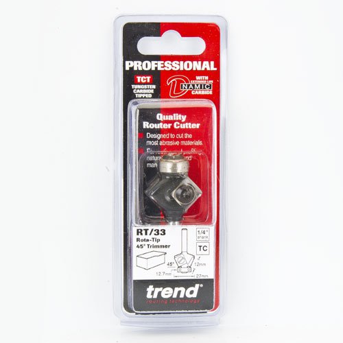 Trend RT/33x1/4TC Rota-Tip Guided Bevel Trimmer Router Cutter 45 deg x 27mm dia x 1/4 shank