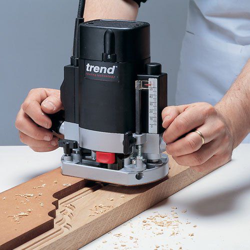 Heavy Duty Trade Router Designed for Tradespeople in the Workshop or On-Site. The Essential Router for Worktop Fitting, Lock and Stair Jigs and General Workshop use.