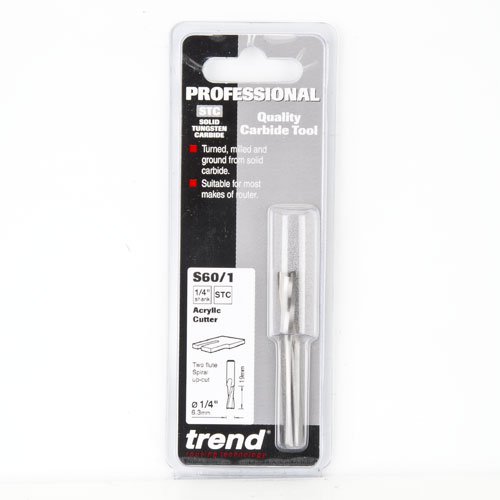 Trend S60/1X1/4STC Pro Upcut Spiral Acrylic Router Cutter 6.3mm Dia x 19mm Cut x 1/4 Shank