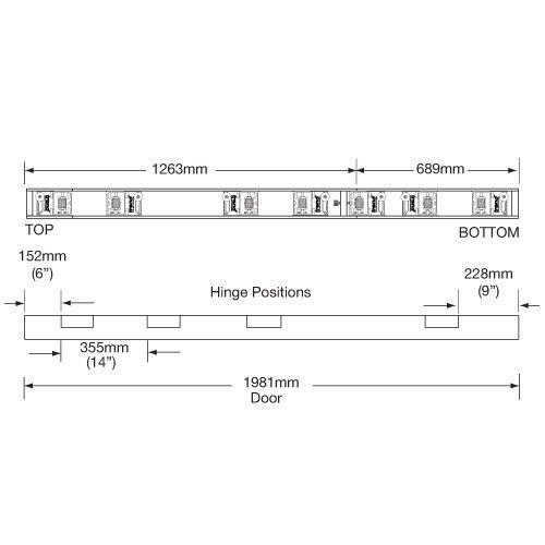 * Please note for doors over 2040mm the bottom hinge will be higher than 9" up.