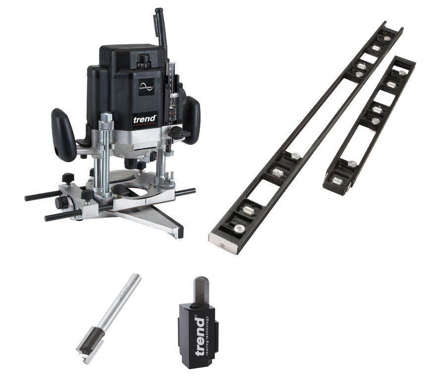 Heavy Duty Trade Router Designed for Tradespeople in the Workshop or On-Site. The Essential Router for Worktop Fitting, Lock and Stair Jigs and General Workshop use.