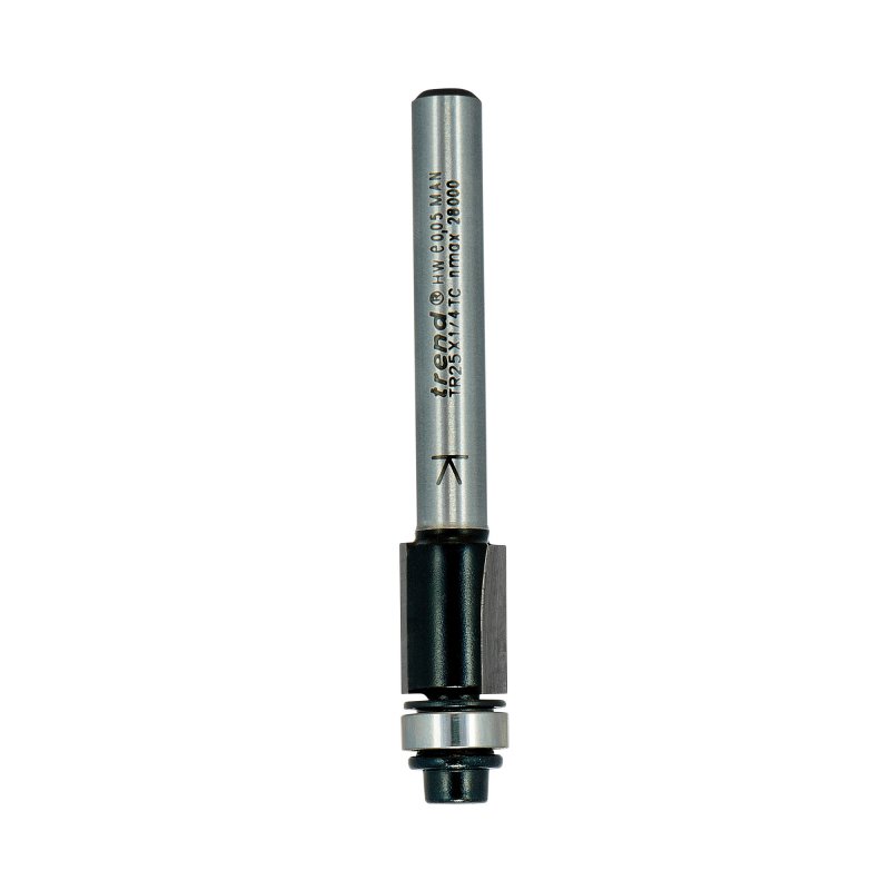 Trend TR25x1/4TC Trade Guided Trimmer Router Cutter 9.5mm dia x 12.7mm cut x 1/4 shank