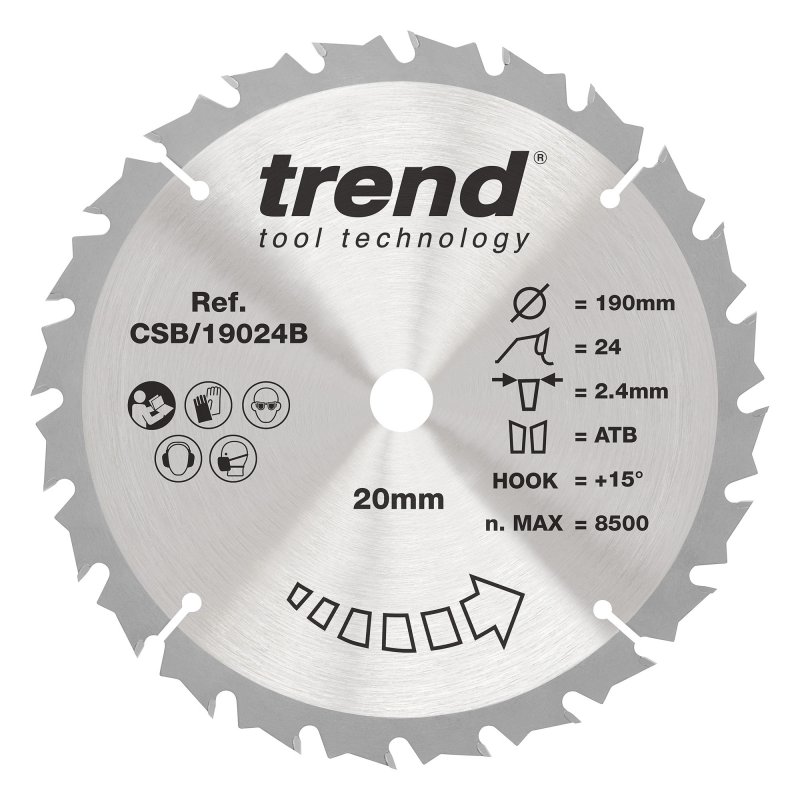 Trend Wood Circular Saw Blade - 190mm dia x 2.4 kerf x 20 bore 24T