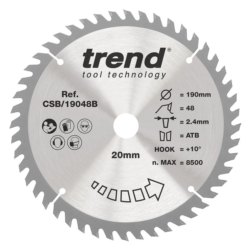 Trend Wood Circular Saw Blade - 190mm dia x 2.4 kerf x 20 bore 48T