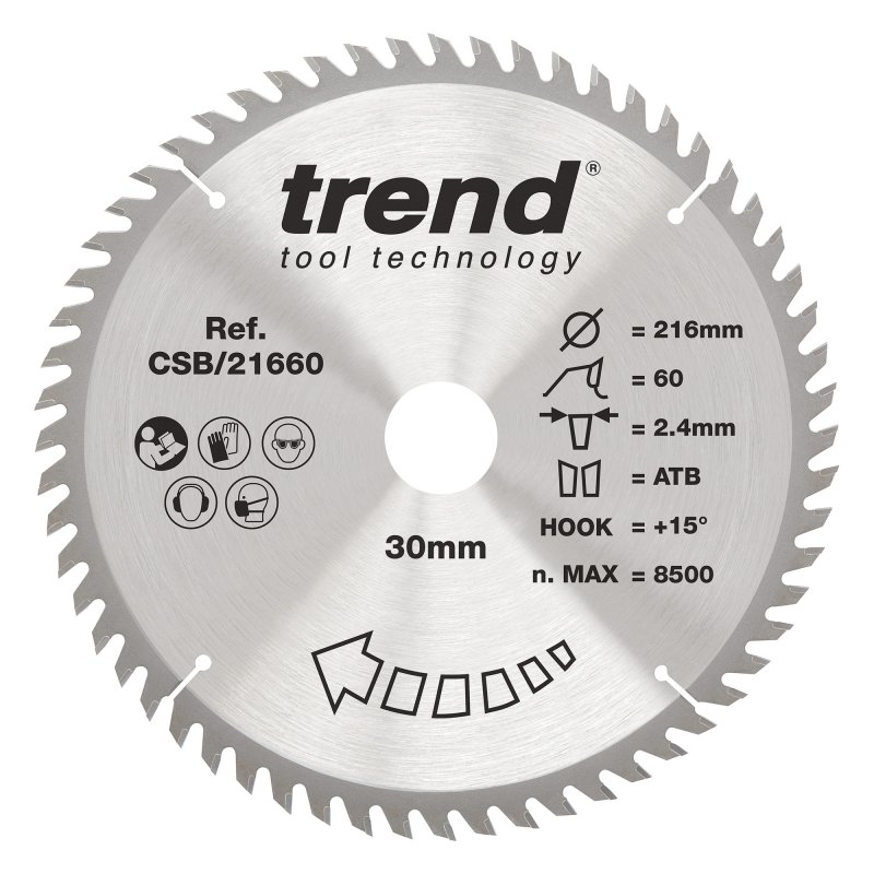 Trend Wood Circular Saw Blade - 216mm dia x 2.4 kerf x 30 bore 60T
