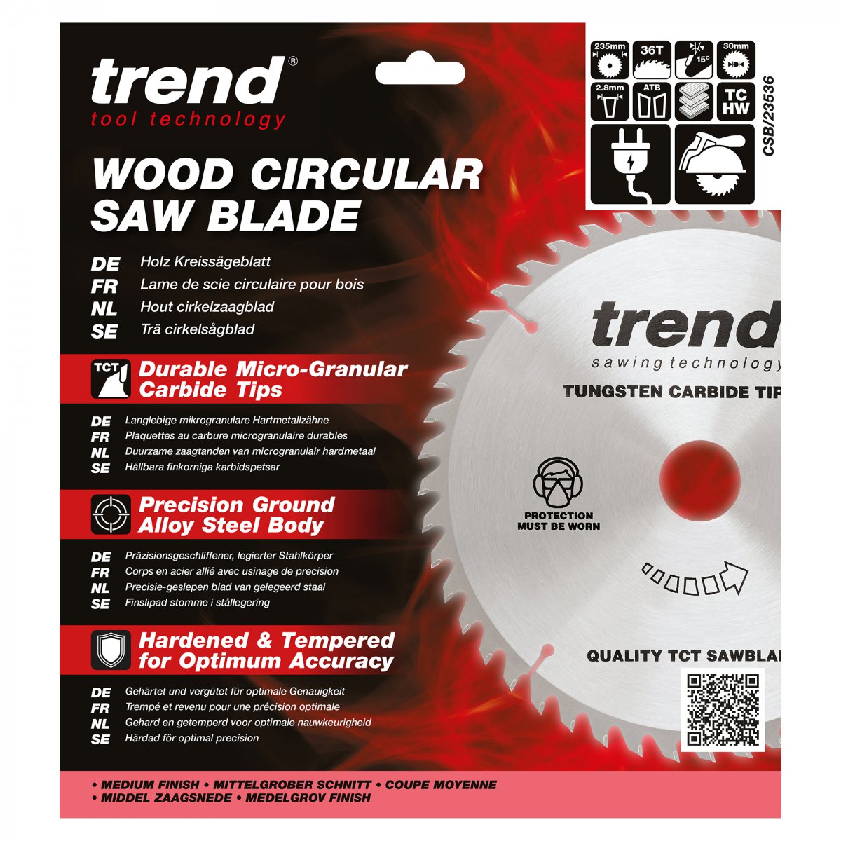 Trend Wood Circular Saw Blade - 235 dia x 2.8 kerf x 30 bore 36T