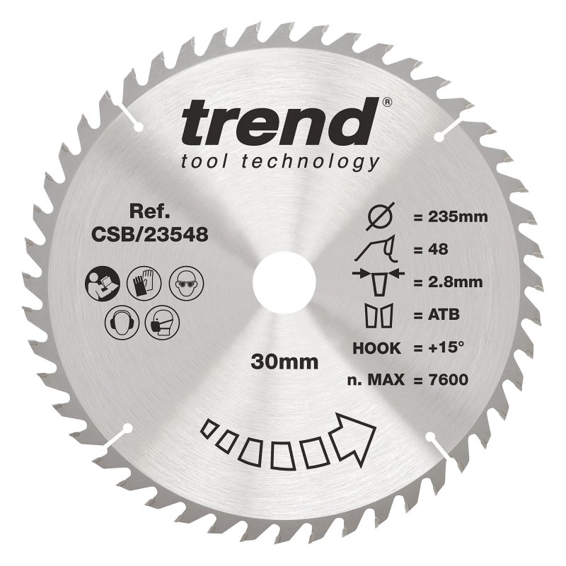 Trend Wood Circular Saw Blade - 235mm blade x 2.8 kerf x 30 bore 48T