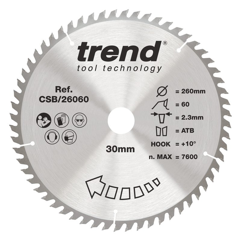 Trend Wood Circular Saw Blade - 260mm dia x 2.3 kerf x 30 bore 60T