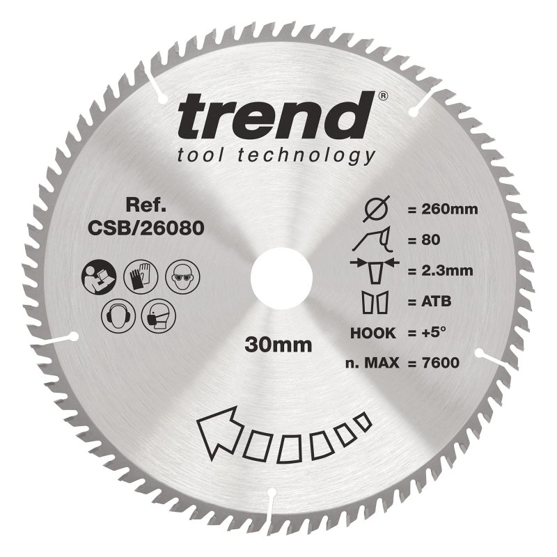 Trend Wood Circular Saw Blade - 260mm dia x 2.3 kerf x 30 bore 80T