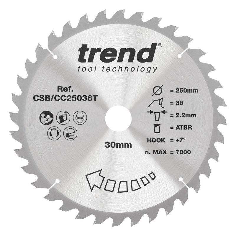 Trend Wood Cordless ATBR Mitre Saw Blade - 250mm dia x 2.2 kerf x 30 bore 36T