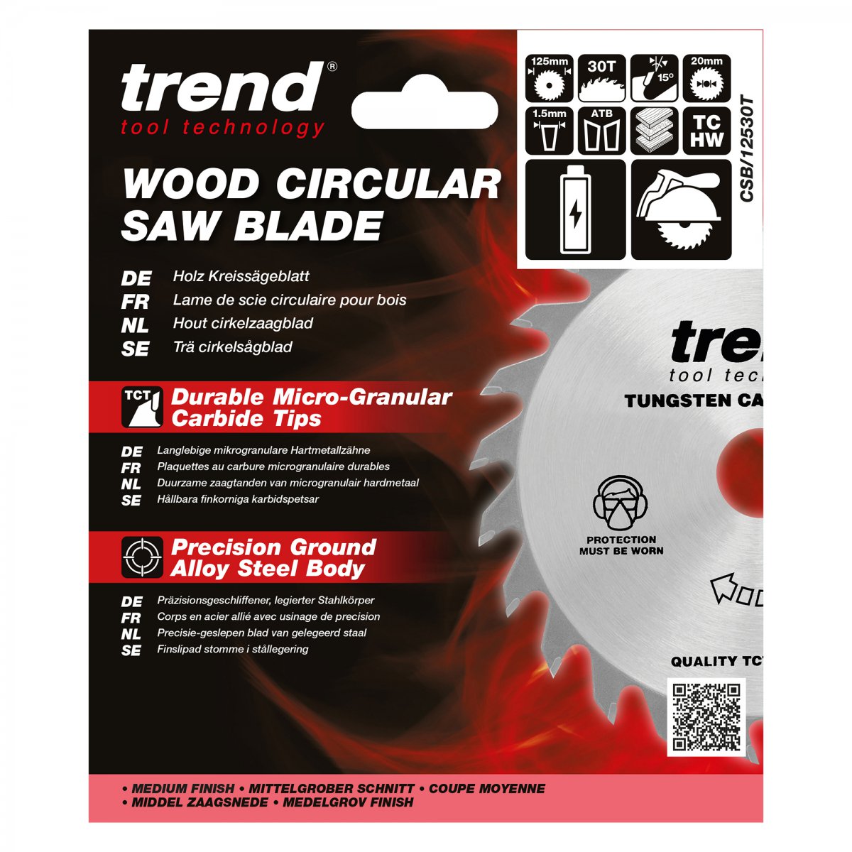 Trend Wood Cordless Circular Saw Blade - 125mm dia x 1.5 kerf x 20 bore 30T