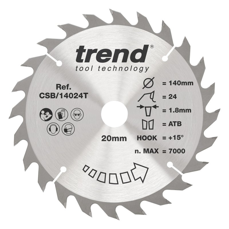 Trend Wood Cordless Circular Saw Blade - 140mm dia x 1.8 kerf x 20 bore 24T
