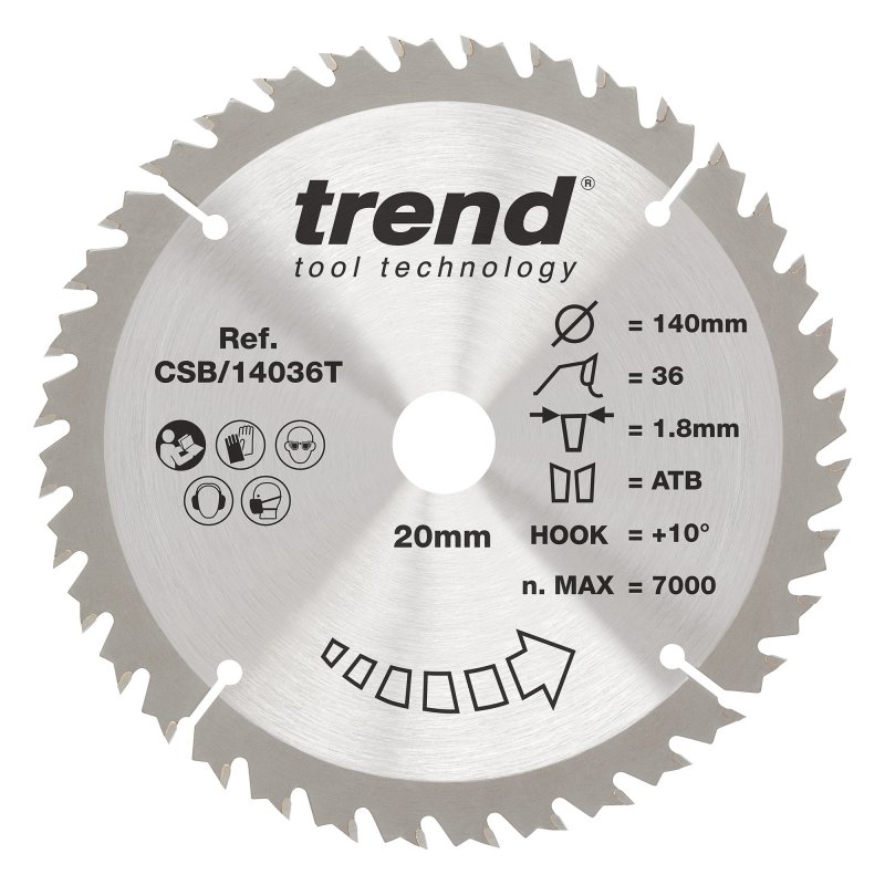 Trend Wood Cordless Circular Saw Blade - 140mm dia x 1.8 kerf x 20 bore 36T