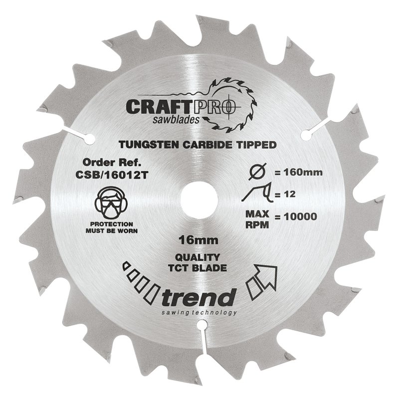 Trend Wood Cordless Circular Saw Blade - 160mm dia x 1.5 kerf x 16 bore 12T