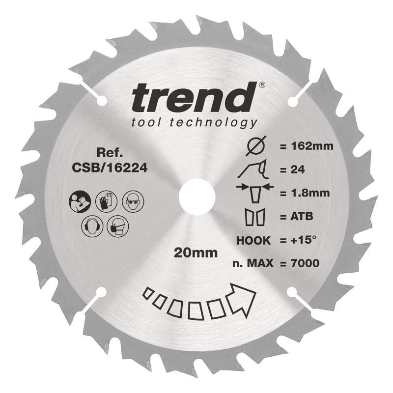 Trend Wood Cordless Circular Saw Blade - 162mm dia x 1.8 kerf x 20 bore 24T