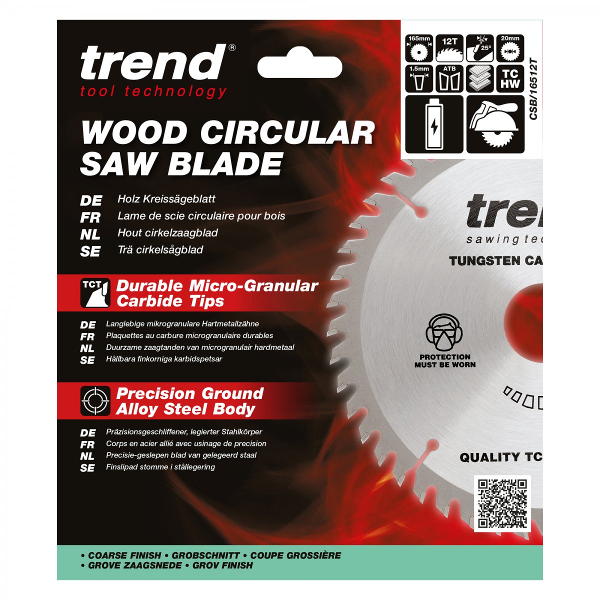 Trend Wood Cordless Circular Saw Blade - 165mm dia x 1.5 kerf x 20 bore 12T