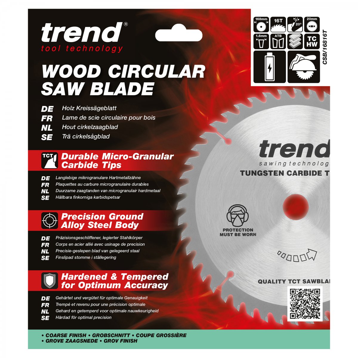 Trend Wood Cordless Circular Saw Blade - 168mm dia x 1.8 kerf x 20 bore 16T