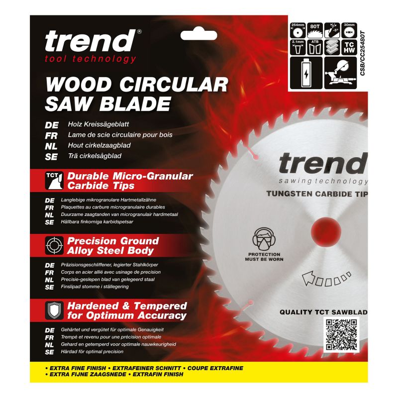 Trend Wood Cordless Mitre Saw Blade - 254mm dia x 2.1 kerf x 30 bore 80T