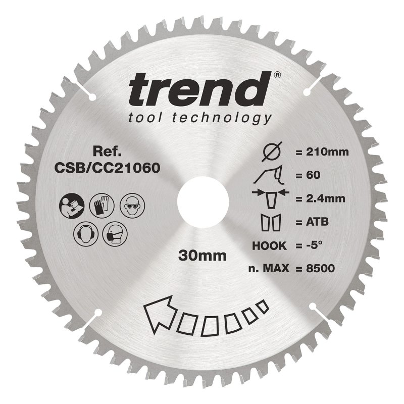 Trend Wood Mitre Saw Blade - 210mm dia x 2.4 kerf x 30 bore 60T