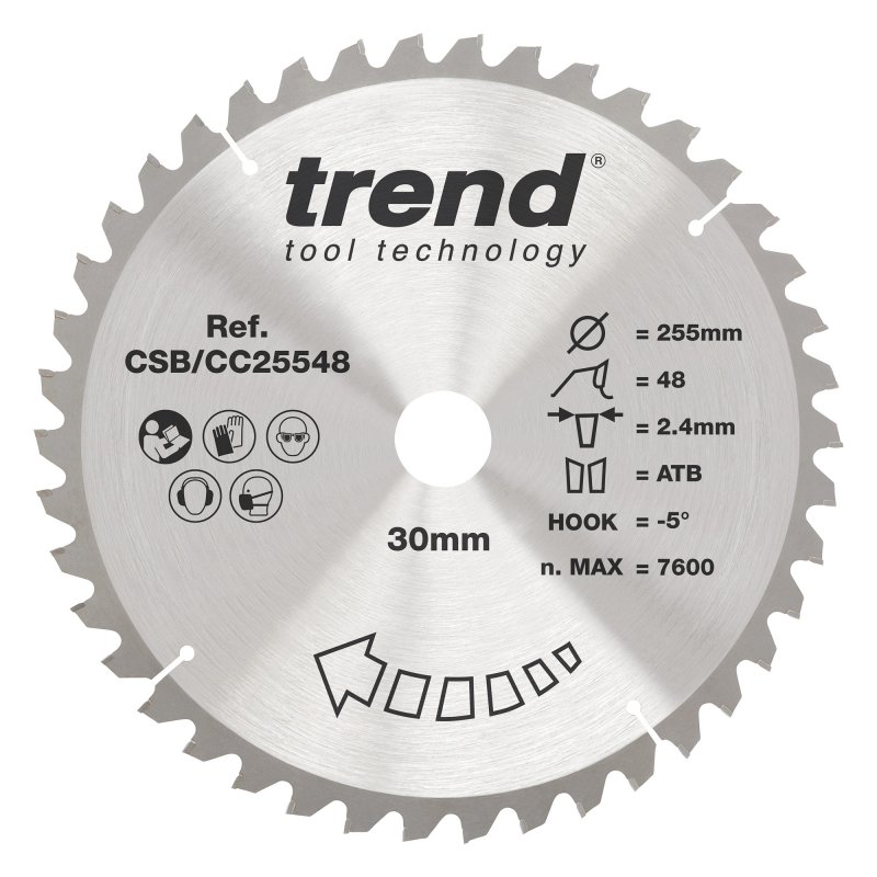 Trend Wood Mitre Saw Blade - 255mm dia x 2.4 kerf x 30 bore 48T
