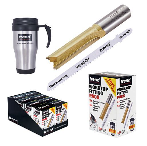 Trend Worktop Fitting Pack - 3 Cutters - Jigsaw Blades - Travel Mug