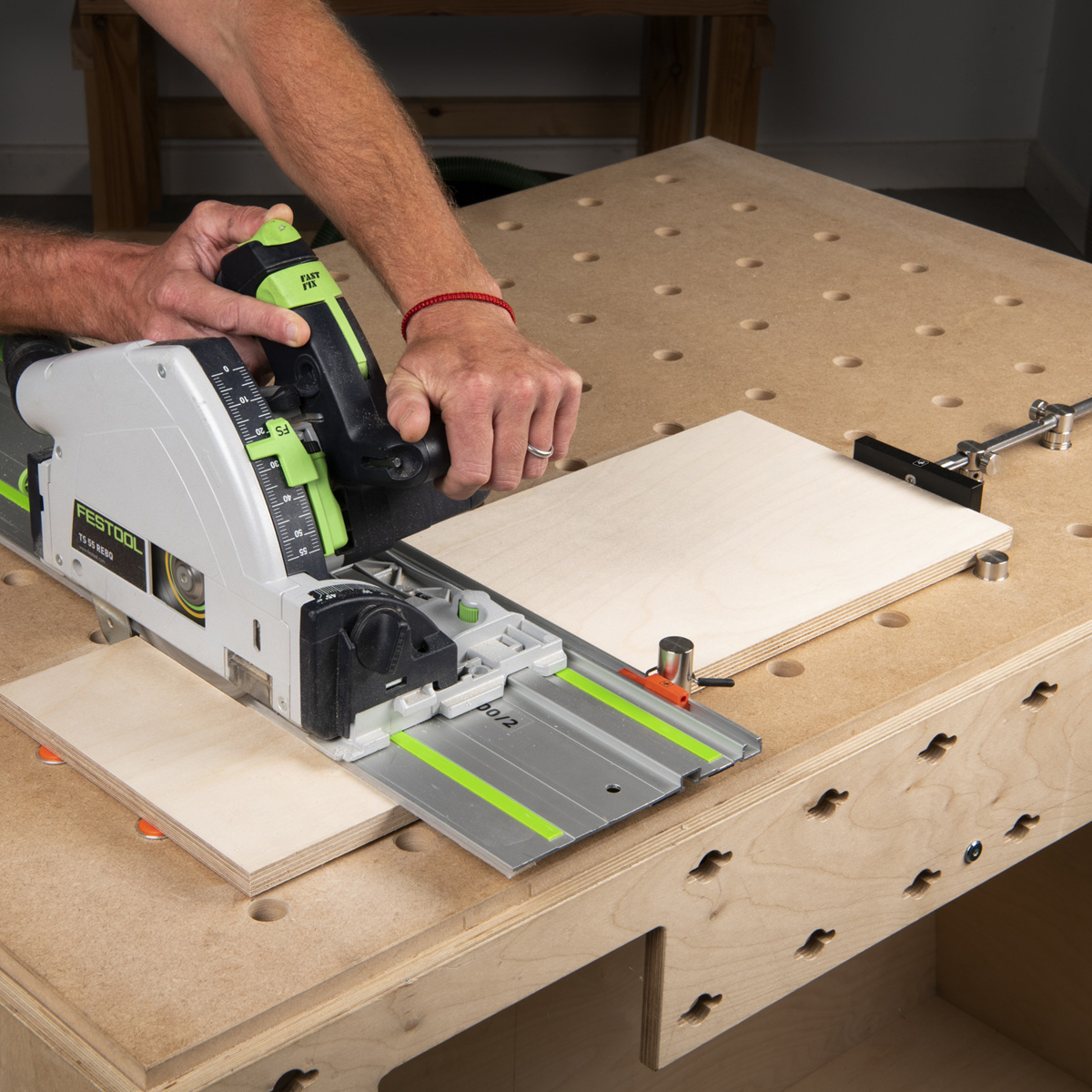 - UJK Anti-Slip Workbench Protection Dogs raise your workpiece slightly, allowing you to use a guide rail and plunge saw without scoring or damaging your workbench.