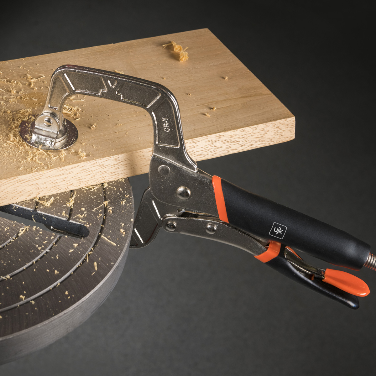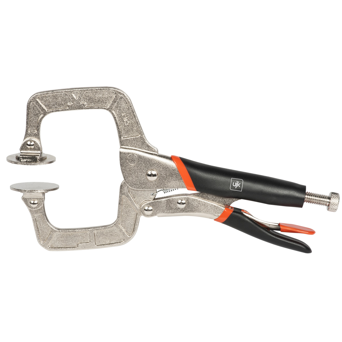 Especially developed for the UJK Pocket Hole Jig, this clamp will hold the portable plate securely to your work whilst drilling and can also be used to clamp the joint together whilst fixing. With a quick action and very secure clamp it has two large 45mm face pads that spread the clamp load. Opening to a maximum of 75mm.