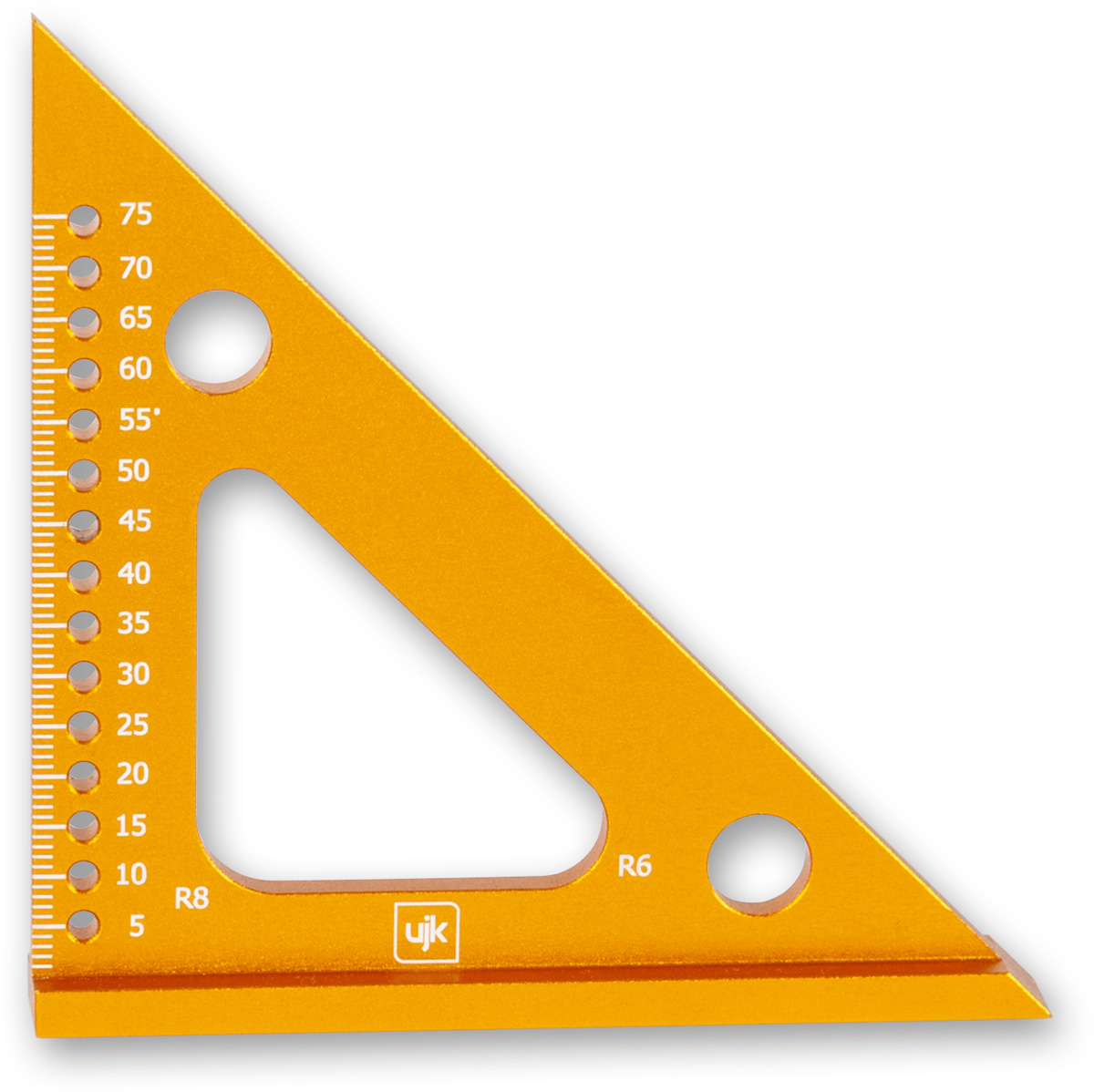 - The UJK Compact Speed Square is the tool for woodworkers who need precision measuring on the go. British made, compact, sleek, and practical, its design for precision work in tight spaces, detailed joints, verifying right angles, and an inside edge radius for marking boards. Manufactured from aluminium, guaranteeing accuracy and durability. The vertical edge is graduated in 5mm or 1/8" increments, with accurate measuring holes for use with a Pica pencil. Enjoy portability and precision with this clever UJK tool.