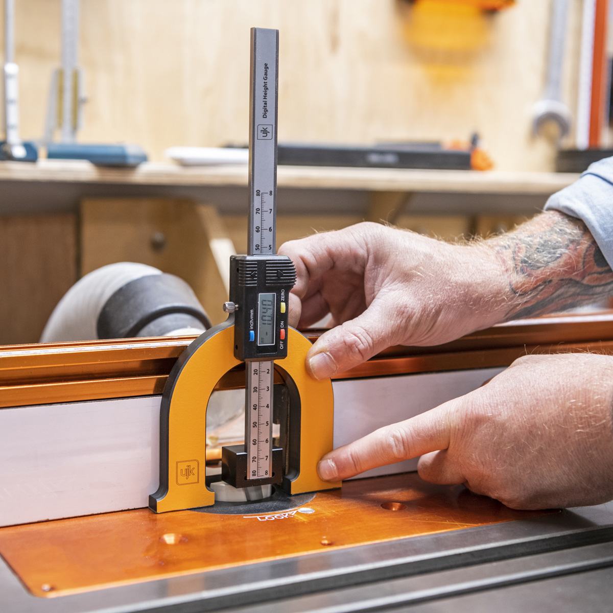 - The UJK Digital Height Gauge is an indispensable measuring tool for the accurate setting of cutting depths, in particular, router cutters and saw blades.