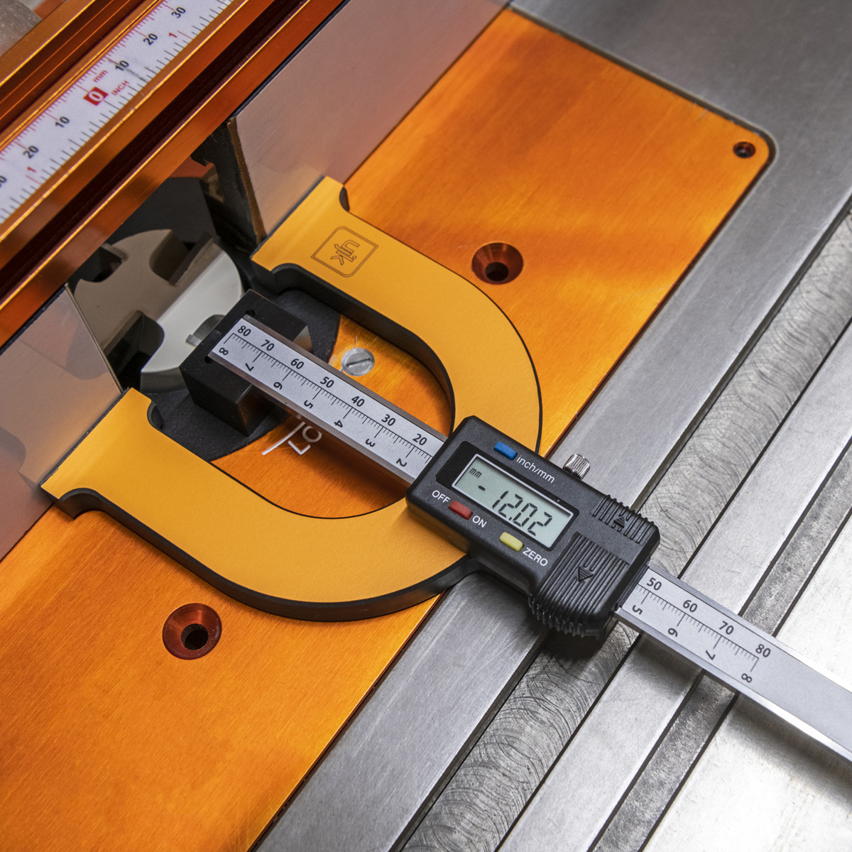 - The main feature is its highly accurate digital scale unit, with an LCD screen offering a read-out in metric or imperial. The display has a resolution of 0.01mm or 0.001 inches. The digital read-out tells you precisely how deep your saw blade or router cutter will cut.